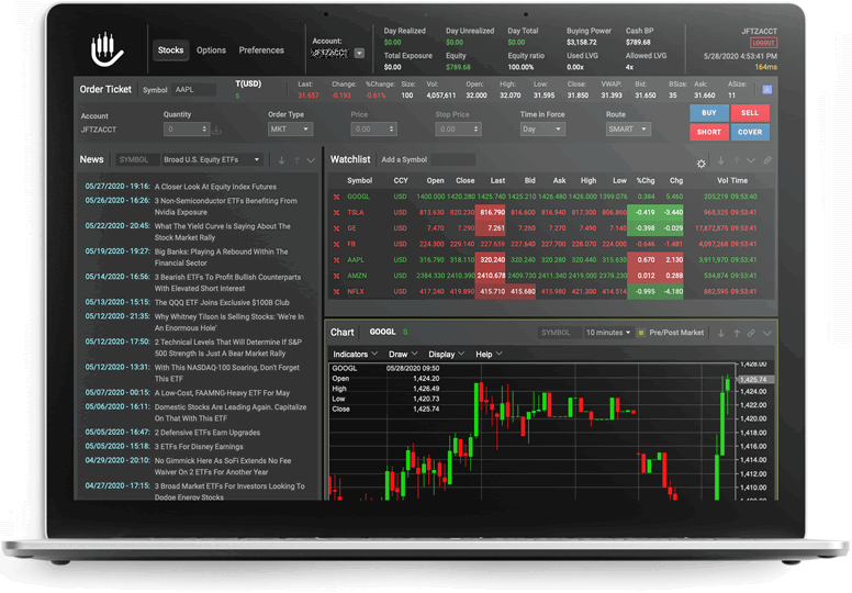 Upgraded real-time HTML5 browser-based trading system. Built for speed in today’s fast paced markets. Platform includes Real-time NASDAQ Level 1 Amex, NASDAQ and NYSE, real-time news, charts, and hot key order entry.
